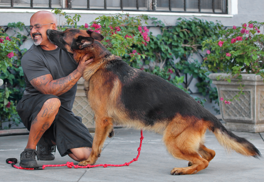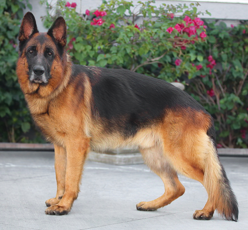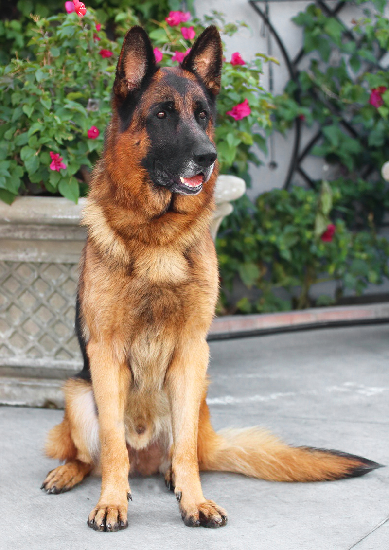 Samson von Solingen is a magnificent, larger sized 5 year old black and red German Shepherd. He definitely comes from a top of the line German Shepherd breeder. Samson is used to, and loved being in a home where he would watch TV with the dad who would use him as a back rest. He is housebroken, knows his commands and loves to search for things. He would be such a fun companion for the right person. He is so smart and intuitive and is the most devoted companion. He is great on long car rides and staying in hotels. His previous family, who had to move to Texas, included a 9 year old child. It was dad who walked Samson and would correct him if he alerted to other dogs on leash. Even though he responds to commands, he is very strong and would do best with a man present during his walks. He is fine in a playgroup with other dogs and walks beautifully next to them at the rescue. Come and meet this stunning boy, you will fall in love just like we did. Rescued from the Kern county animal shelter. |