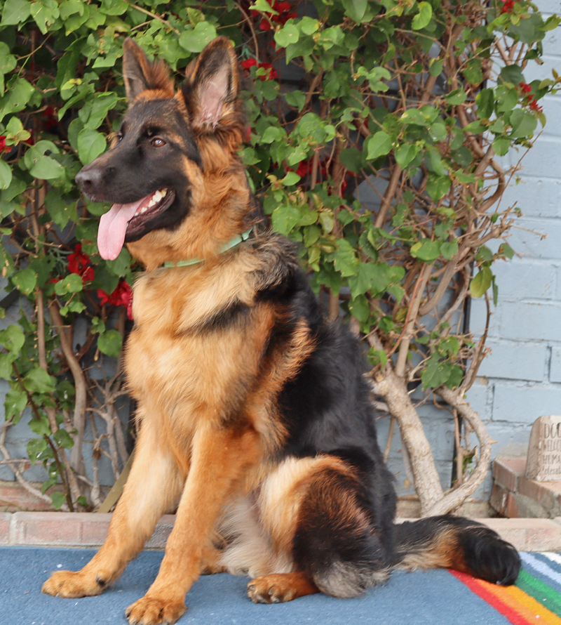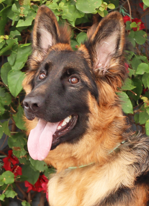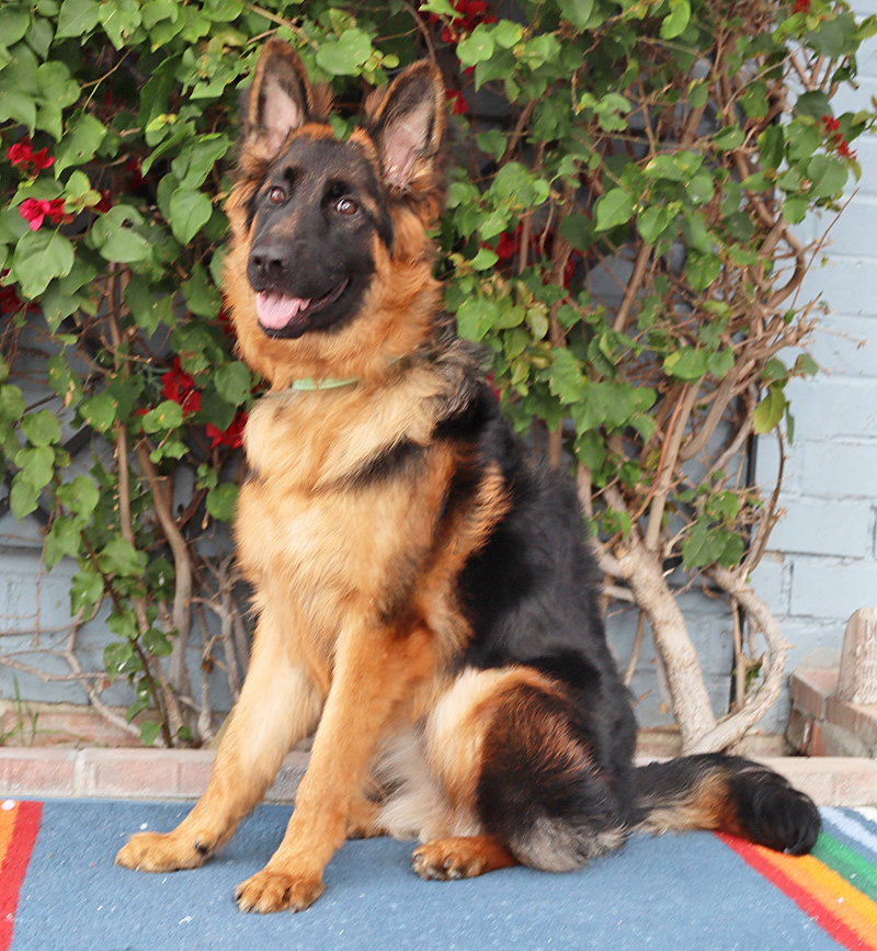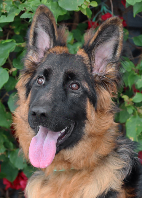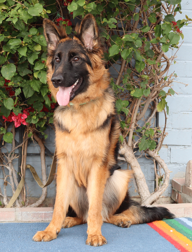 Marisa von Mullrose is a stunning 9 month old long haired German Shepherd. Young and spirited, Marisa is a very sweet and loving girl who will be your shadow once she gets to know you. Already housebroken, she uses the dog door and sleeps through the nite in a crate. She loves toys and even talks to them. Like most young shepherds, she needs people who can continue to guide her and provide structure. Luckily, she is very smart and treat-motivated and learns new things quickly. She already knows Sit, Down and Leave it. Her ideal home would include another playful dog as she loves to play with the dogs in her foster home. She has an enthusiastic play style, but does take corrections well from the dogs when it's a bit much. She is not a fan of cats, so a feline-free home would be ideal. If you are looking for a young girl who likes to have fun and are willing to provide the guidance she needs, Marisa just might be the one for you. Rescued from the Downey animal shelter. |