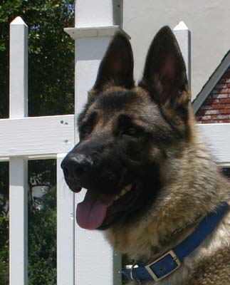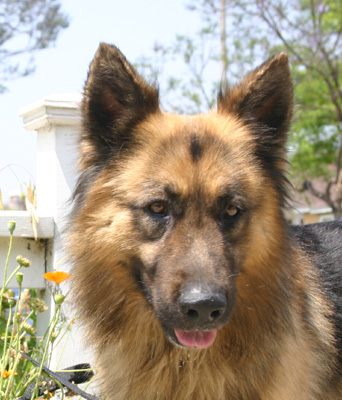 Adopted Lobo is a very handsome, German-bred guy. He has the big bones and squarer back of the German line. Lobo has a wonderful temperament. |