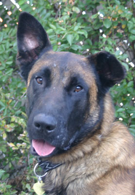 Shepherd mix with the coloring of a Belgian Malinois and a touch of
