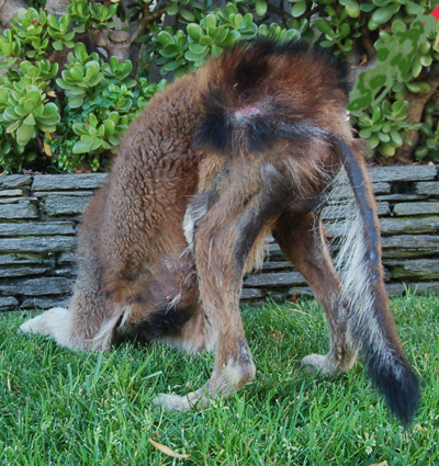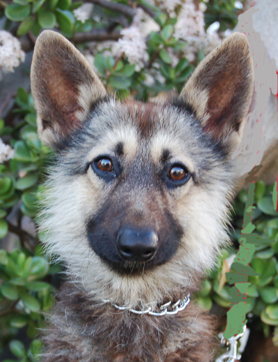 Loki von Zwerg is a German Shepherd, but he is a dwarf. He is full grown and about 20 pounds, he could fill out some but most likely won’t grow even with medical care. We have had x-rays done and a blood panel, we are waiting for results. There are two kinds of dwarfism: one caused by the pituitary gland, the other by the thyroid. With medical care they can benefit somewhat, we are waiting to hear what we can do. Loki is a happy and sweet boy, he likes other dogs. He loves visits at the hospital and he loves treats. |
