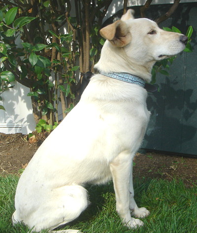 Pax is a two year old female white Shepherd mix who is on the small side at 35 lbs. Pax is not only smart and easily trainable, she is also loving and friendly. Her foster mom recently had a litter of puppies at the house and Pax took over as their caretaker, watching over them as they played and snuggling with them on the bed to keep them warm on cold nights. Pax is housetrained and she walks wells on leash. Pax loves to go for walks, and she is a very swift runner, so if you want a jogging partner, she would be a wonderful companion. Pax also enjoys car rides and is a very easy houseguest. |