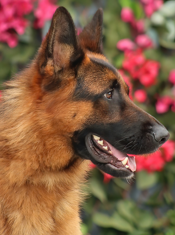 Rudy von Rietberg is a stunning 11-12 month old black and red German Shepherd. Besides being utterly handsome, this fluffy-coated boy has a cheerful personality that will win you over at first meeting. Treat-motivated and wanting to please make Rudy an A+ student for learning new things. He already knows how to sit on command and offer his paw, and he is learning how to heel on leash. He walks well in a pack with 6 other dogs and looks forward to romping with his furry friends in our playard, but he's a no-go for cats. Come to meet Rudy soon and shake hands/paws with him! Rescued from the Inland Valley animal shelter. |