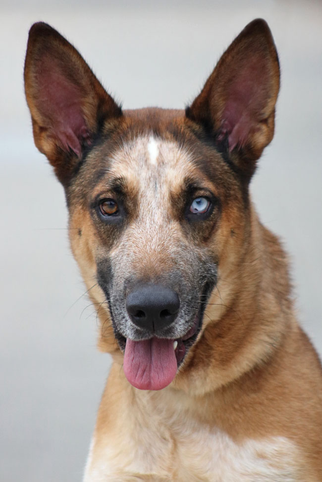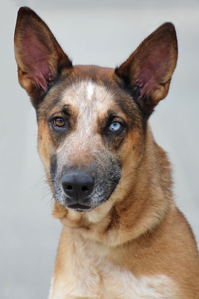 Sugar von Steina is a stunning 14 month old Shepherd mixed with possibly Aussie. Sugar is an all-around sweet, affectionate young girl. She must have had some love and training in her past life since she is social with people and dogs, and knows how to walk nicely in a pack or by herself. She’s all about having a positive attitude with her tail always wagging. She has a strikingly-unique look (bi-color eyes!) – maybe a mix with some sort of cattle dog with her spots? She’s still a pup at heart and likely has a lot of learning to do. She will thrive in a forever home where she can get lots of activity and attention. No cats please. Come meet Sugar! |